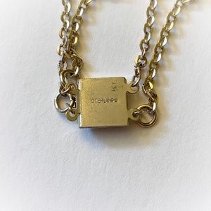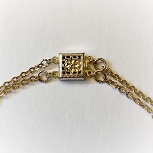 Delicate Art Deco styled sterling double strand necklace with either a gold wash or vermeil plating and black painted beads.