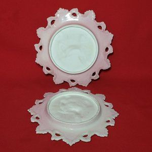 VTG Decorative Dish Cupid and Victorian Woman Gold Pink Painted Fluer De Lis Border