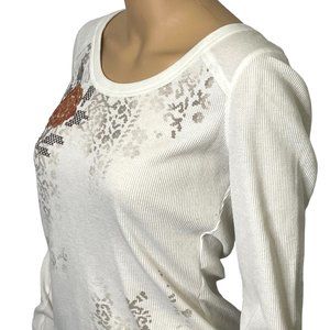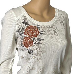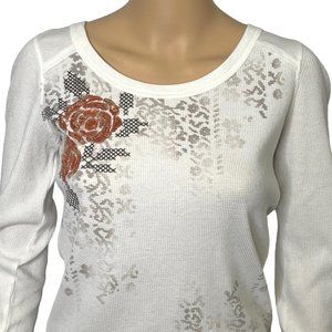 VTG Decree Womens Large Ivory Floral Long Sleeve Pullover Thermal Blouse Shirt