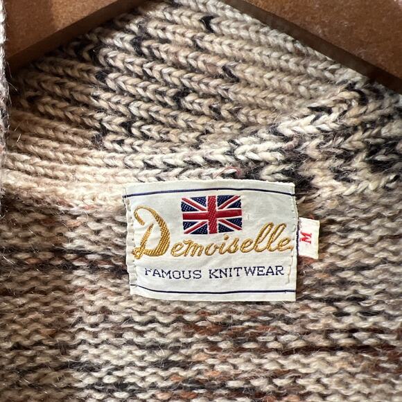 VTG Demoiselle Womens Wool Cardigan Sweater Sz M Marled Pockets Preppy Academia