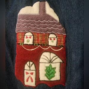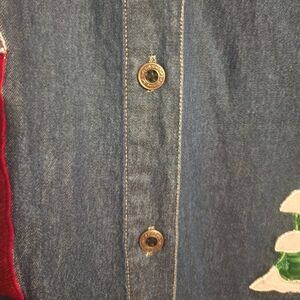 VTG Denim Christmas Shirt Med Embroidery Boho Button up Long Sleeve Cottagecore