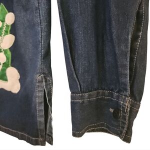 VTG Denim Women Sz Med Embroidery Boho Button up Long Sleeve Shirt Cottagecore