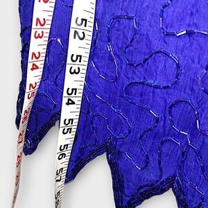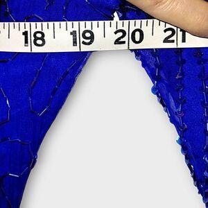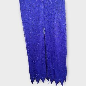 VTG Denise Elle Formal Gown Sz Medium Blue Silk Beaded 80s Maxi Mermaid Glam