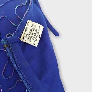 Vintage 80s Denise Elle Formal Gown Sz Medium Blue Silk Beaded Sequins Maxi Mermaid Glamcore