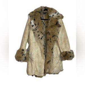 VTG Dennis Basso Faux Fur & Suede Leopard Print Fur Penny Lane Style Jacket M