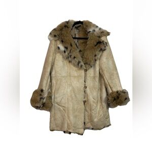 Vintage , Mid- Length, Adjustable Fur Cuffed Sleeves , Button Closure Down Front , Pockets