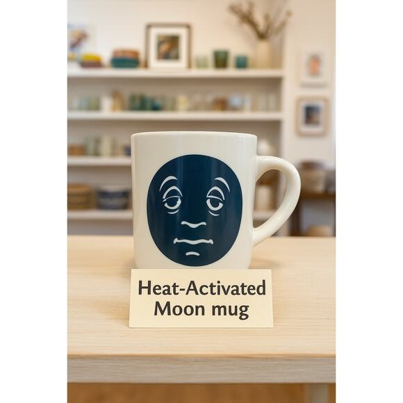 -Add hot water and the moon on the mug slowly turns a brighter color and wakes up.