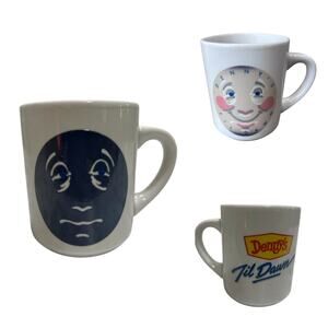VTG Denny's Til Dawn Cream/Dark Teal Ceramic Heat Activated Moon Coffee Tea Mug