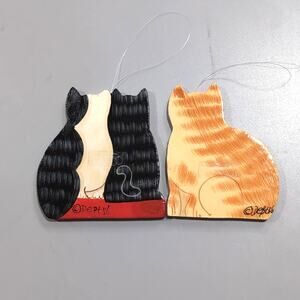 VTG Dept. 56 Collectible Cat Ornaments Set of 2 Orange Tabby Black White Cats