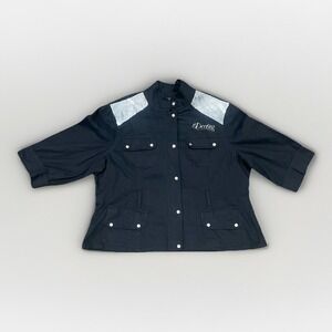 A pre owned Vtg Dereon Y2K Jacket Womens 2XL Bling Black Silver Zip Button Embroidered, in excellent condition.