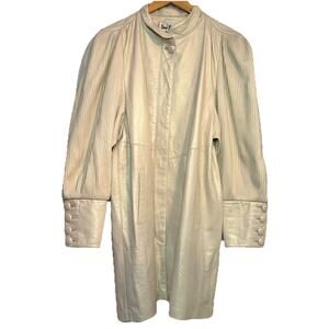 VTG Dero Enterprises Rocco D’Amelio Ivory Leather Women Coat Pleated Sleeves MED