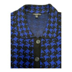 VTG Designers Original Women’s 1X Cardigan Sweater Jacket – Blue & Black Houndstooth – 52" Chest