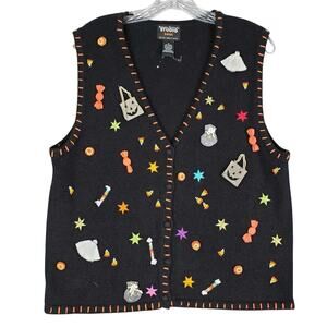 VTG Designers Originals Studio Vest Size Medium M Halloween Sweater Ghosts Candy