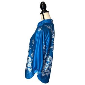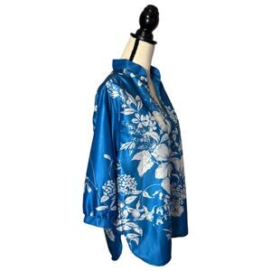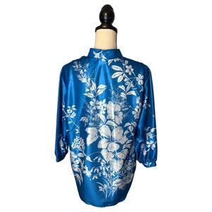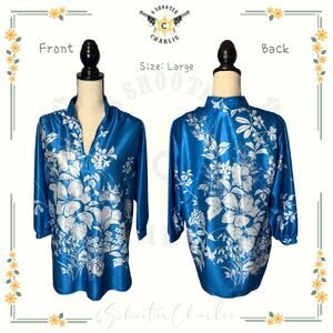 VTG Di Carlo of California Blue Floral Print Blouse Size Large Hawaiian Boho USA