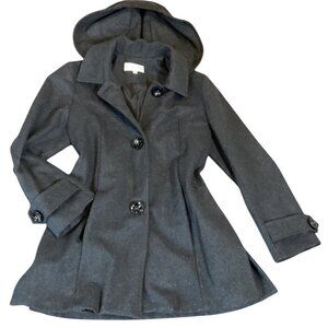 VTG Di' Nuovo Sz 34/Medium Gray Wool Removable-Hood Coat #2F