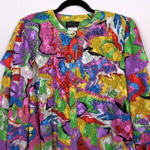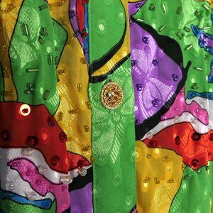 VTG Diane Freis Bold Colorful Abstract Sequin Gold Buttoned Cardigan New NWOT
