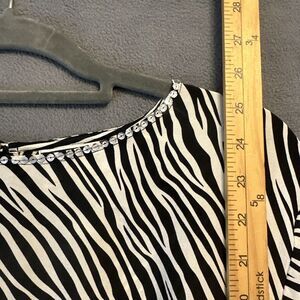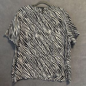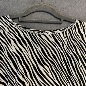 VTG Diane Gilman 100% Silk Blouse Size 2X Animal Print Zebra Top Black White