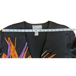 VTG Diane Gilman Silk Top L Sequin Tropical Flowers Cheetah Print 90s Maximalist