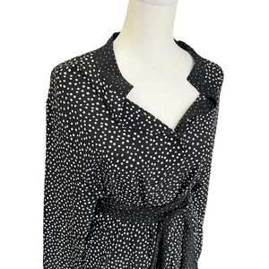 VTG Diane von Furstenberg 100% Silk Polka Dot Long Sleeve Button Up Dress M