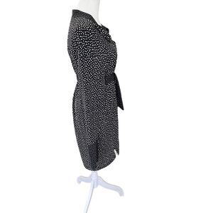 vintage Diane von Furstenberg dress, DVF silk dress, polka dot wrap dress, button up silk shirt dress, long sleeve waist tie dress, black and white silk dress, classic polka dot dress, vintage designer dress, workwear dress, elegant date night dress, 80s silk DVF, timeless polka dot print, cruise outfit, vacation dress, day-to-night dress, minimalist black and white dress, vintage fashion, designer career dress, silk knee length dress