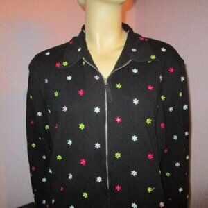 VTG Diane's DAISY Embroidered Size L JACKET Sequins FULL ZIP Stretch Knit POCKET