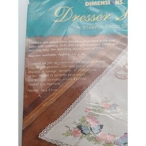 VTG Dimensions Stamped CROSS STITCH DRESSER SCARF 72769 Butterfly Dreams Floral