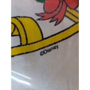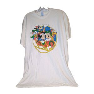 It has stains on the back, see pictures, and should be easily washable. I did not want to damage it due to its vintage age. This vintage Disney adult t-shirt from Delta features beloved characters Mickey, Minnie, Donald, Pluto, and Goofy, along with festive Christmas designs. The white shirt is size large and suitable for unisex wear. It's a perfect addition for any Disney fan's collection, especially those who love contemporary Disneyana. The shirt is in great condition and ready to be worn or displayed.