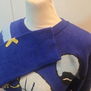 VTG Disney Angry Jumping Donald Duck Crewneck Pullover Sweater Unisex XS Blue