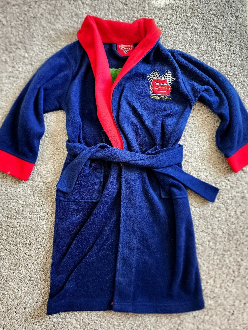 Vintage Y2K Disney Pixar Cars/ Lightning McQueen rare robe size 4/5. From the movie Cars. Has great detail and is great for any Lightning McQueen fan! Mild imperfection as pictured.