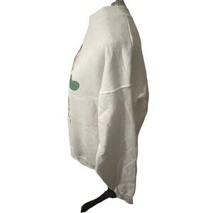 This vintage Disney Cast Member original sweatshirt features Mickey Mouse in a classic 90s theme. The cream-colored sweatshirt is made of breathable cotton material and has a crew neck and long sleeves, making it perfect for all seasons. The size is regular and fits comfortably for a size L.