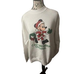 VTG Disney Cast Member Original Sweatshirt Mickey Mouse Holidays Sz Large RARE
