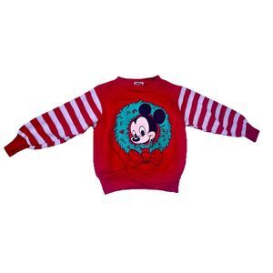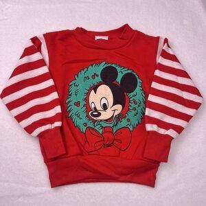 VTG Disney Christmas Mickey Mouse Jog Togs Sears 2T Sweatshirt Striped Sleeves
