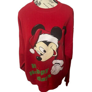 VTG Disney Designs Mickey Mouse Happy Holidays Red Sweatshirt Sz Large RARE