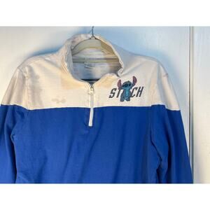 VTG Disney Lilo & Stitch Sweatshirt Juniors XL Quarter Zip Grunge Skate Kidcore. Generalized fading, there is a large stain to the right chest/shoulder, number on the back have peeling.