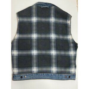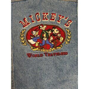 This vintage Disney Mickey Mouse World Travelers Reversible Denim Vest Men's Size Medium. Flannel plaid underside. In excellent pre-owned condition.