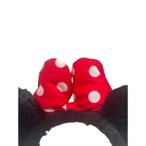 VTG Disney Parks Black Furry Minnie Ears Headband Red White Polka Dot Puffy Bow