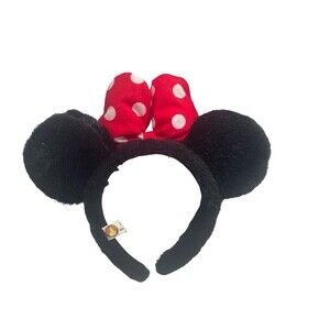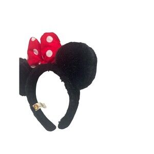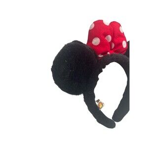 VTG Disney Parks Black Furry Minnie Ears Headband Red White Polka Dot Puffy Bow