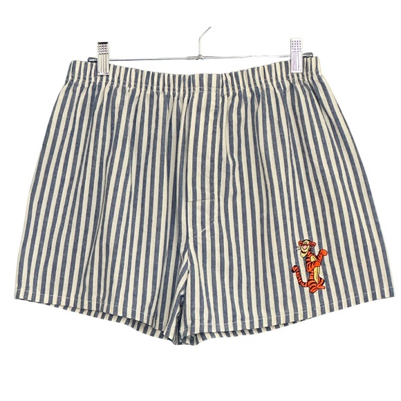VTG Disney Store Womens Sleep Shorts L Blue Stripe Tigger Pajamas Loungewear