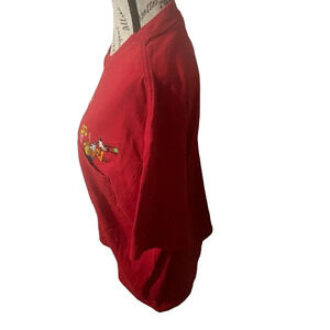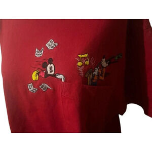 VTG Disney T Shirt Mens Red Pocket Tee Mickey Goofy Embroidered Retro Size Large