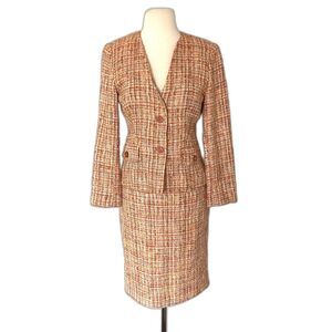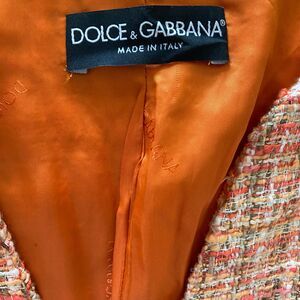 VTG Dolce & Gabbana Orange Tweed Blazer Skirt Suit Set Lined Tailored Italy