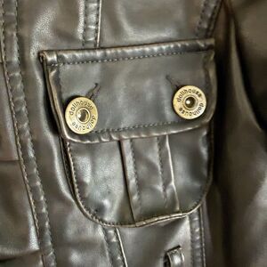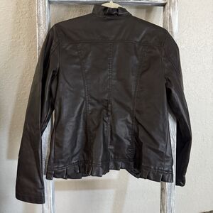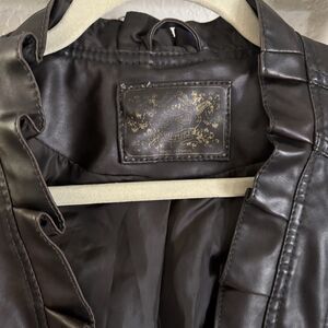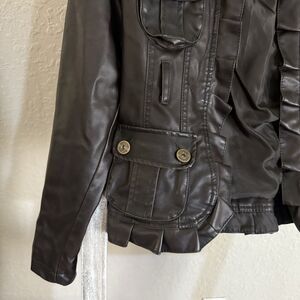 VTG Dollhouse Vegan Leather Jacket Ruffled Women’s Large Distressed Color Y2K