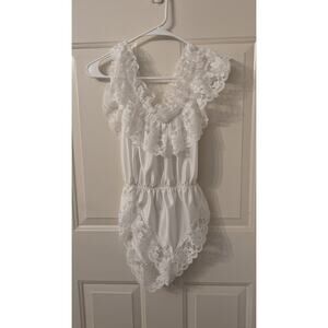 VTG Dolores for Poirette White Lace Teddy, One Piece Lace with Tie, Small Bridal