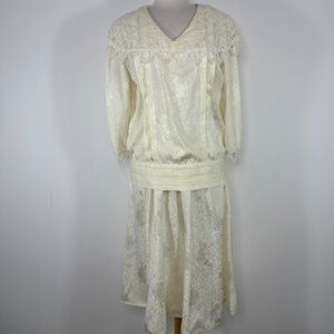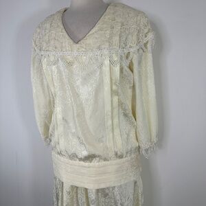 VTG Donaldsons Cream/Gold Midi Cocktail Dress Size 14 50's Style