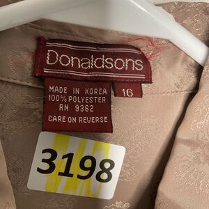This VTG Donaldsons Silky Blouse Womens sz 16 Taupe Paisley DeAttached Tie Mint Korea