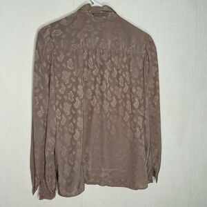 VTG Donaldsons Silky Blouse Womens sz 16 Taupe Paisley DeAttached Tie Mint Korea