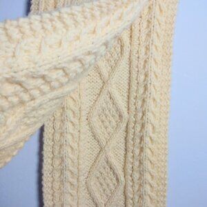 Aran wool scarf, Irish knit scarf, fisherman sweater scarf, heritage wool, vintage Ireland wool, cable knit scarf, cream winter scarf