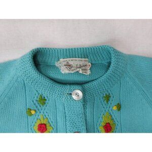 VTG Donovan Galvani Embroidered Cardigan Sweater Sz 38 M Aqua Blue Hong Kong