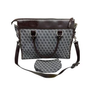 VTG Dooney & Bourke Monogram Double Pocket Tote Navy Canvas Leather Trim w Pouch
