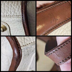 VTG Dooney & Bourke SATCHEL All Weather Leather Pebble creme BONE Broke Zipper