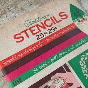 VTG DoublGlo Christmas Stencils Window Spray Snow Decorations 60s Retro
